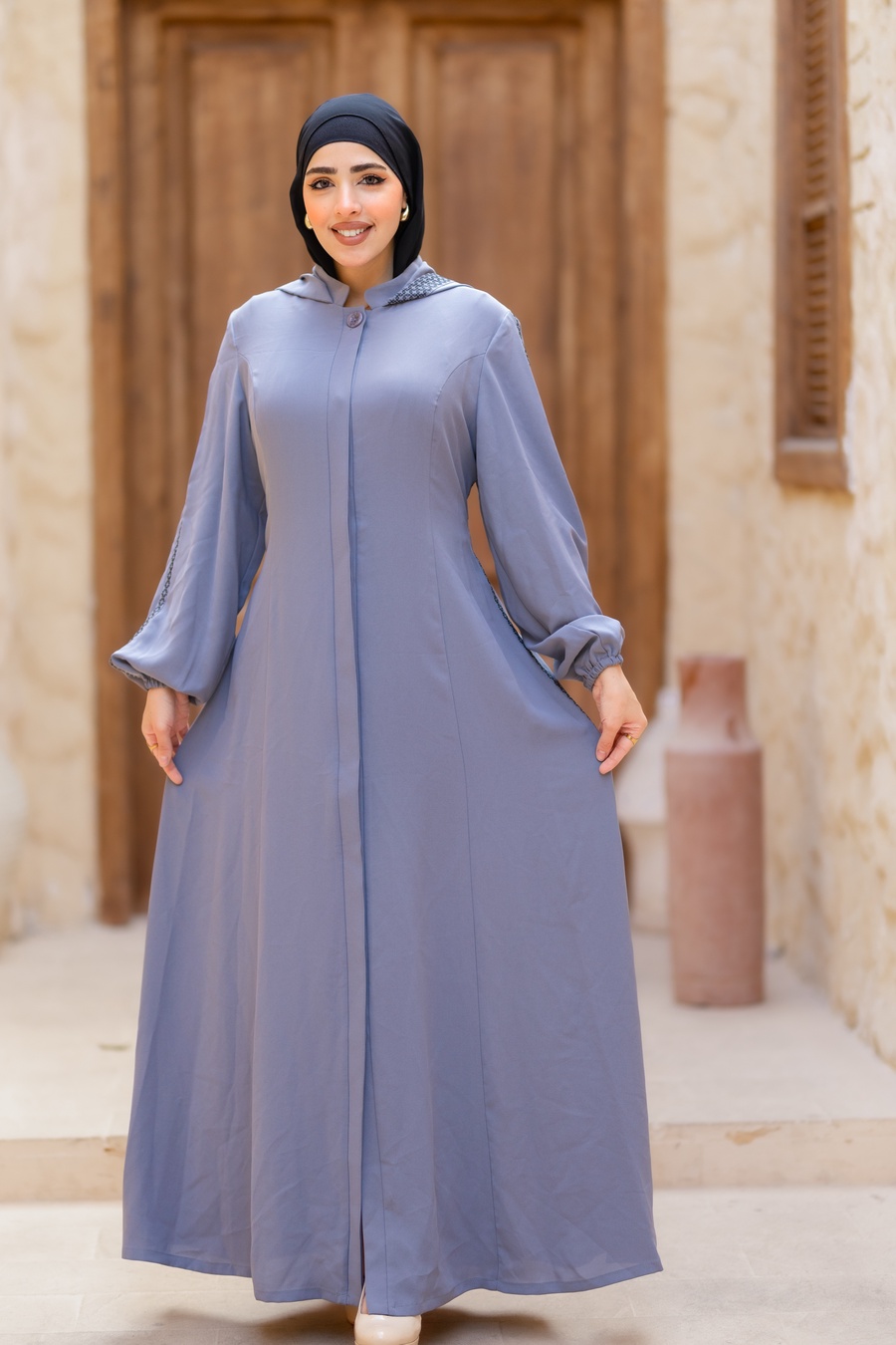 التصميم بييجي بقصة واسعة ومريحة، مع تطريز هندسي شيك على الكم بيضيف لمسة فخامة، وغطاء الرأس اللي بيدي طابع شبابي وعملي.